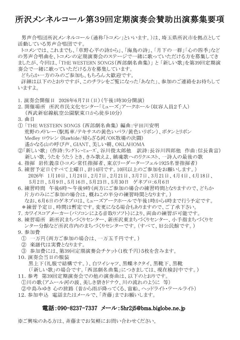来年の第39回定期演奏会は2026年06月07日(日)となりました。